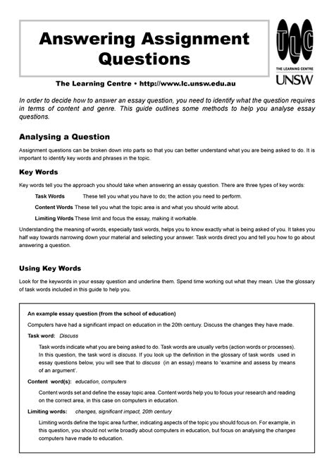 Read examples of essay questions and answers PDF