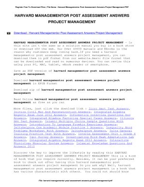 Read Online Harvard Managementor Post Assessment Answers Project Management Epub By Click Button. Harvard Managementor Post Assessment Answers Project Management it’s easy to recommend a new book category such as Novel, journal, comic, magazin, ect. You see it and you just know that the designer is also an author and understands the challenges involved with having a good book. You can easy klick for detailing book and you can read it online, even you can download it