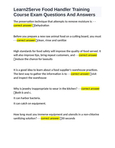 Download Food Hler Course Answers Reader